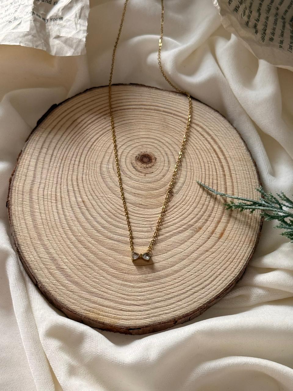 Add a touch of festive elegance to your daily look with our Crystal Bow Pendant Necklace. This delicate pendant features a sparkling bow crafted with high-quality AD stones, symbolizing joy, celebration, and timeless charm. Set on a premium gold-plated twisted chain, this piece blends subtle sophistication with a festive feel—perfect for the Christmas season.